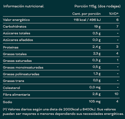 Ingredientes: masa madre de arroz, harina de sarraceno, semillas de chia, fibra vegetal, aceite de girasol, sal.